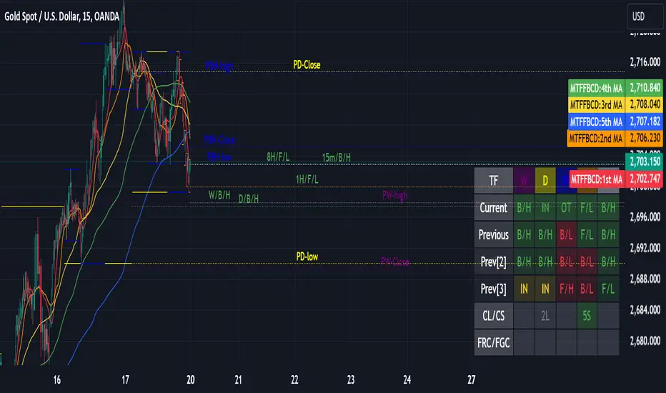 2.1 We also show the high and low of various TFs, including the current high and low lines (which are updated in real-time. This can be observed in one of the previous snapshots.