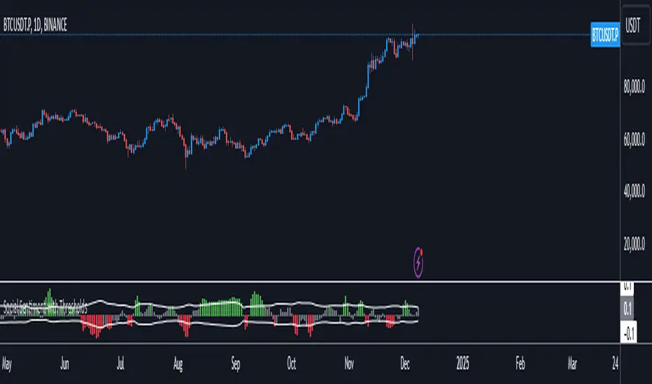 This indicator helps traders understand market psychology by identifying moments of extreme optimism or pessimism. Green bars indicate positive sentiment surpassing the threshold, while red bars indicate negative sentiment crossing the threshold. Gray bars represent neutral or non-actionable sentiment.開源腳本