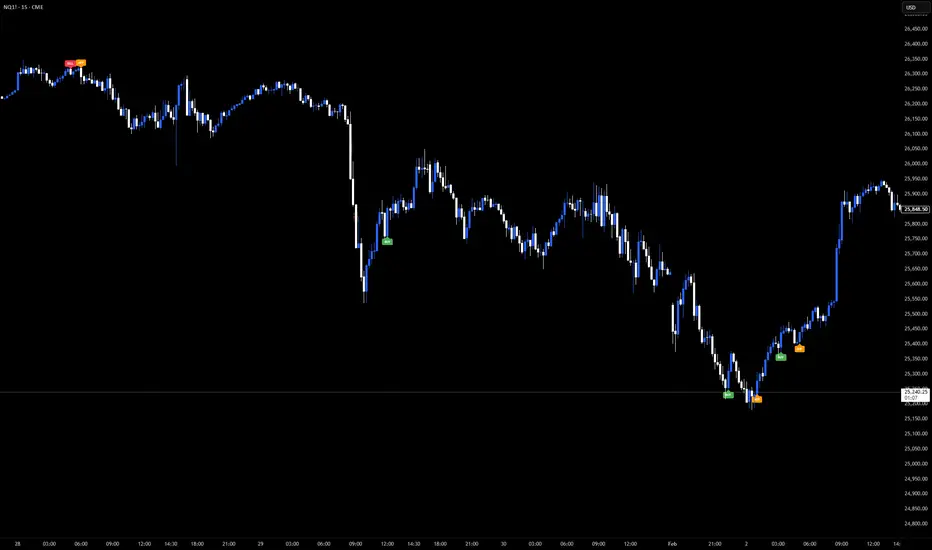 ATP System: When a primary signal triggers (BUY or SELL), the system tracks subsequent signals within 15 bars. If another signal occurs in the same direction within this window, it's labeled "ATP" instead of generating a new primary signal—helping traders properly scale into positions rather than over-leveraging.