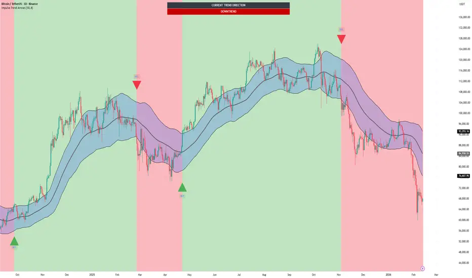 When a new BUY/SELL impulse is confirmed, the script updates a persistent trend state (“BUY”, “SELL”, or “NONE”).