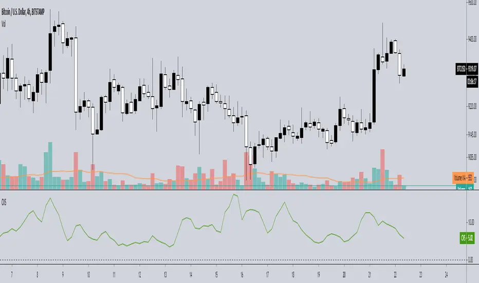 Basic script that sees where absorption maybe occurring by looking at the volume of the last 4 candles relative to the distance of their range.