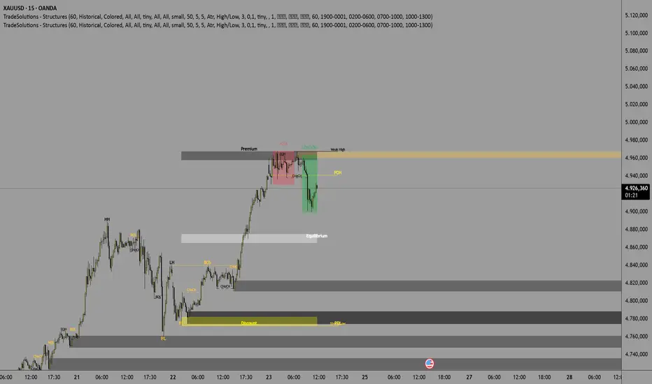 Premium / Discount / Equilibrium zones based on the latest swing extremes.