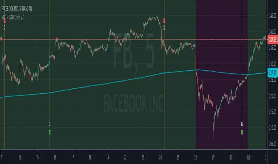 To make it more convenient for your use we have labeled the golden gross with a G and there is a green vertical bar that is available on the signal. Same for the death cross we have put a D and a red vertical bar.