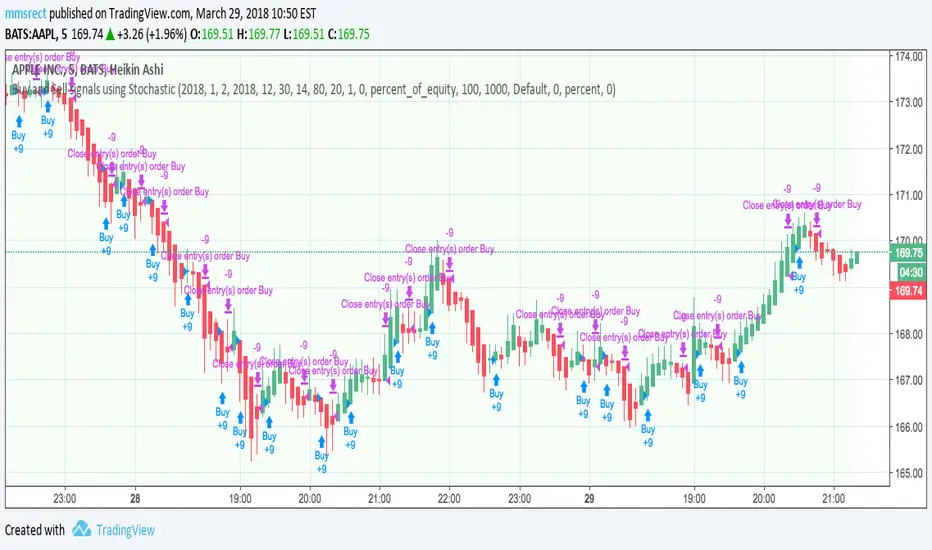 Simple Buy and Sell signals using Stochastic with the ability to further change backtest's start and end date.