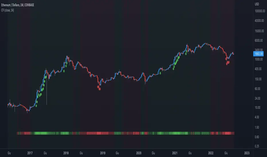 The Crypto Force Index (CFI) indicator helps us understand the current strength and weakness of the price. It is very useful when used on high timeframes for investment purposes and not for short term trading.