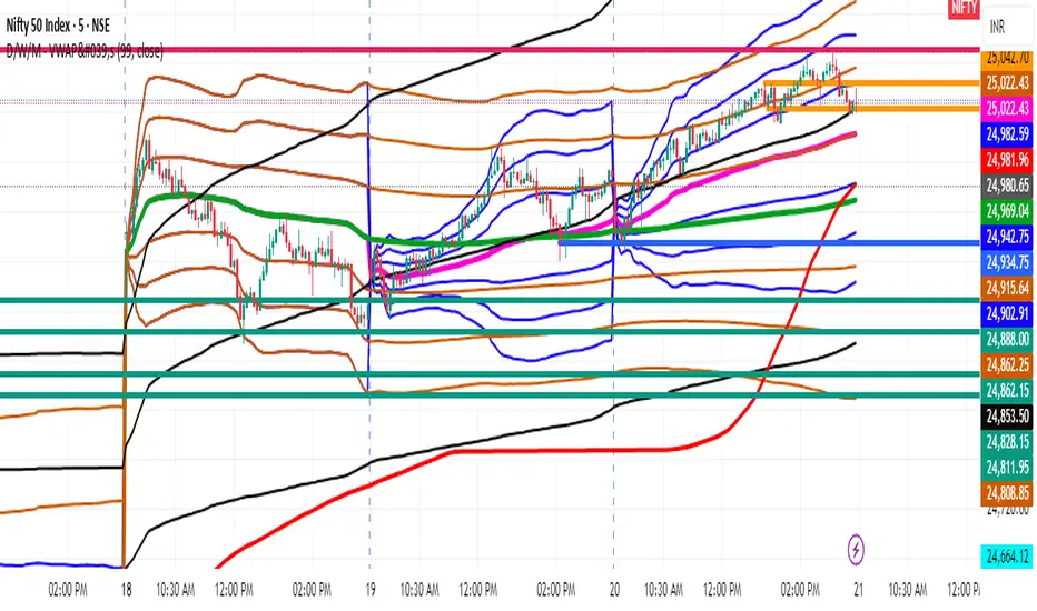 Shows potential overbought/oversold zones relative to the day's VWAP.