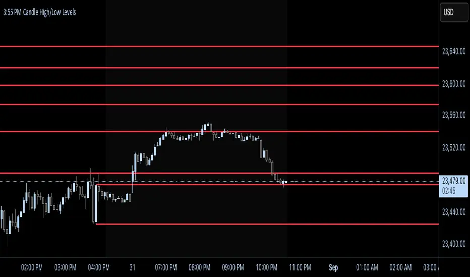 HIGH and LOW of the wicks of 3:55 PM 5 minute candle