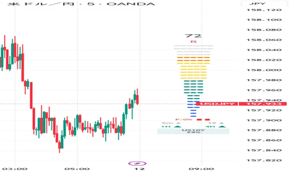 Unlike traditional indicators that obscure price action, this HUD resides elegantly next to the price scale. It is designed to allow you to intuitively decide whether to "Step on the Gas (Entry)" or "Hit the Brakes (Wait)" using only your peripheral vision, without ever taking your eyes off the candlesticks.