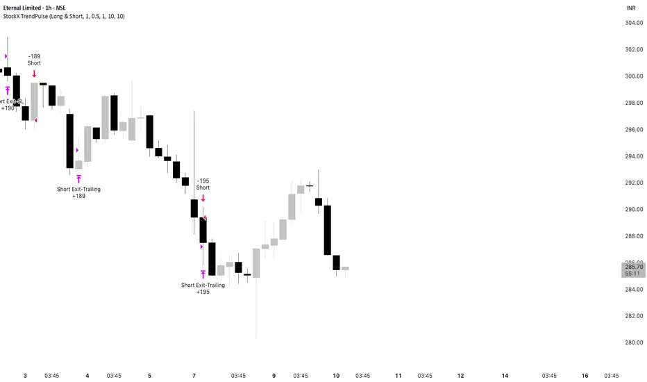 StockX TrendPulse is a premium strategy with proprietary statistical algorithms. The code is protected and available through invitation only. To Request Access: 📧 Email: brijamohanjha@gmail.com
