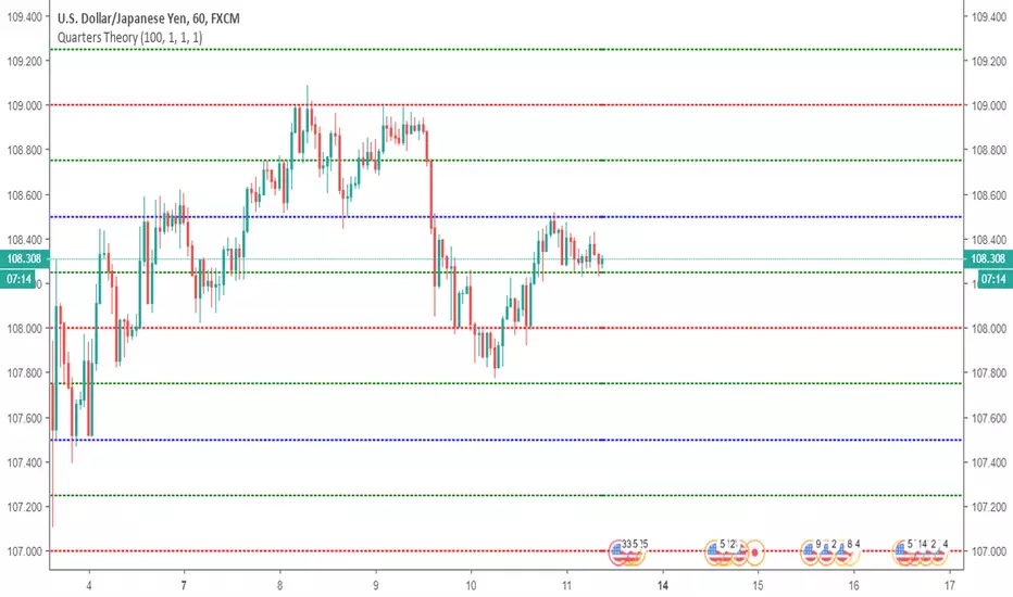 This indicator helps you to put Quarter Theory lines on your chart. It's defaults are meant for EURUSD , but you can change it for other charts. There are 16 lines in this indicator.