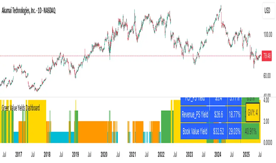 The Greer Value Yields Dashboard visualizes and evaluates four powerful valuation metrics for any publicly traded company: