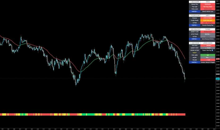 The unique value of this script lies in its Consensus Logic. When enabled, the "Apex Predator" signals are automatically filtered by the "Bias Scanner" and "Logic Engine." If the execution engine wants to buy, but the Logic Engine detects a "Bull Trap" or the Bias Scanner shows "Distribution," the signal is blocked to protect the trader.