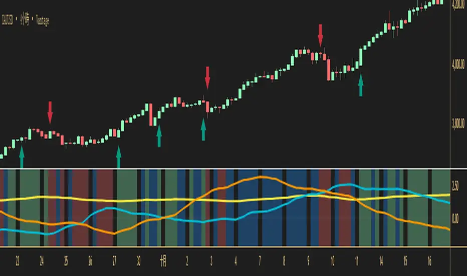 This indicator visualizes the relationship between Gold’s global strength and the U.S. Dollar Index (DXY) to help traders identify periods of confluence or divergence between the two assets.