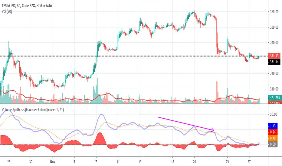 A weighted synthesis of various volume indicators. Divergence is key as with most volume indicators. Good add-on to Trend Shift Indicator.