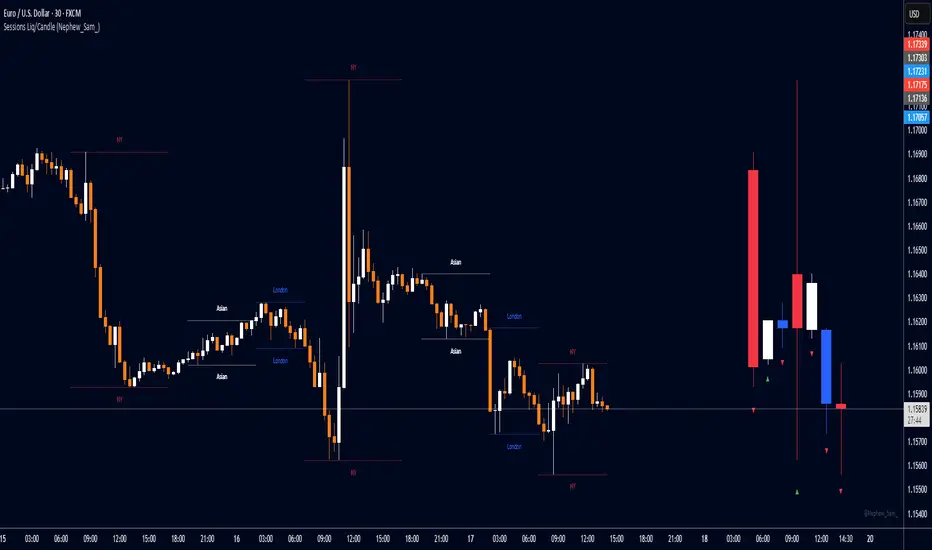 This indicator marks out intraday sessions summarized into single candles, with an additional option to mark out the HL of each session. Perfect for understanding AMD within a glance (accumulation-manipulation-distribution)