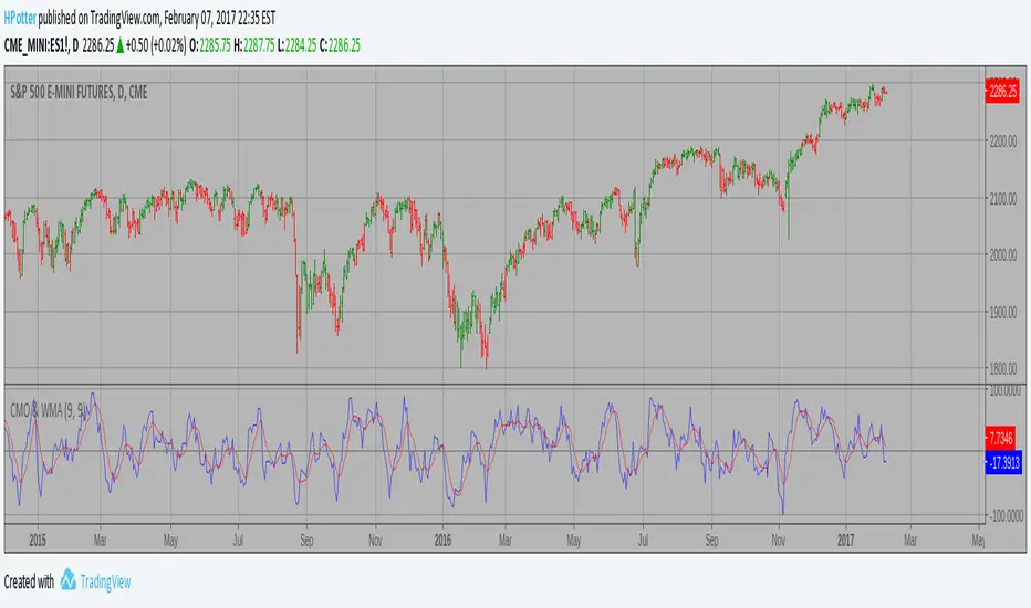 This indicator plots Chande Momentum Oscillator and its WMA on the