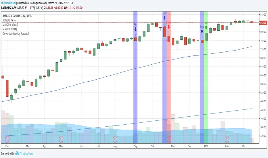 Based on Thomas Bulkowski's top ranking small pattern: the Downside Weekly Reversal pattern.