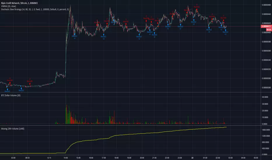 created this to show 24hr volume (moving sum) on a 1minute chart (of the quote currency)開源腳本