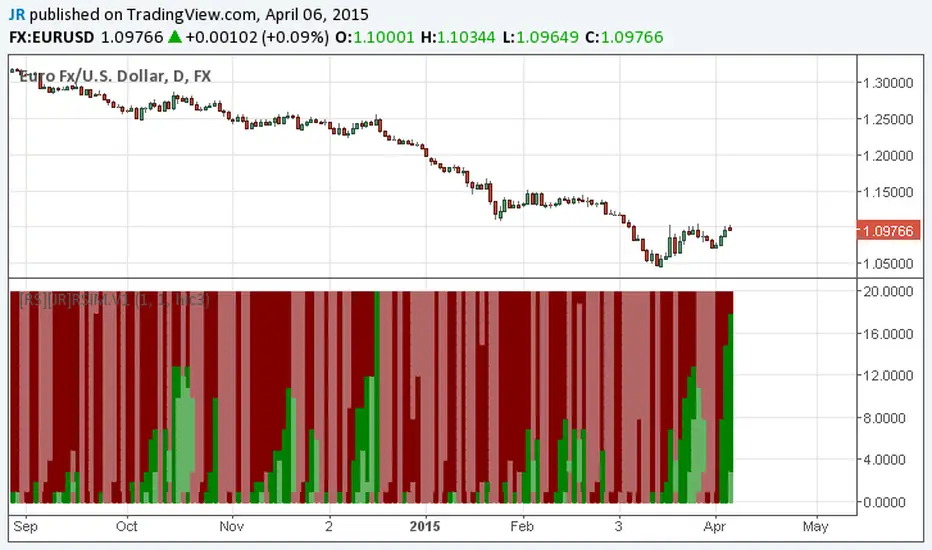 This system is a clash of two indicators, Momentum and RSI. Strength of signals are viewed by both height and color. Dark Green or Light Red bars signal strong momentum. Light Red bar signals and Green bar signals reach an apex at the top of the indicator pane.