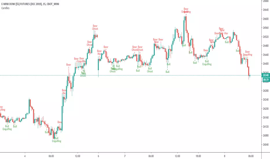 Since most candlesticks can have more than one name, I refined the candlestick patterns to either Bullish or Bearish. Also, added the IB Bear and IB Bull bar (IB is inside bar formation). Also added the Ghost Pivot formation but the next bar should always follow the direction of the Ghost formation. For example, a ghost bearish indicates the next bar should be bearish. These formations also need to appear at an area of support or resistance (ie not in the "middle of nowhere".發行說明