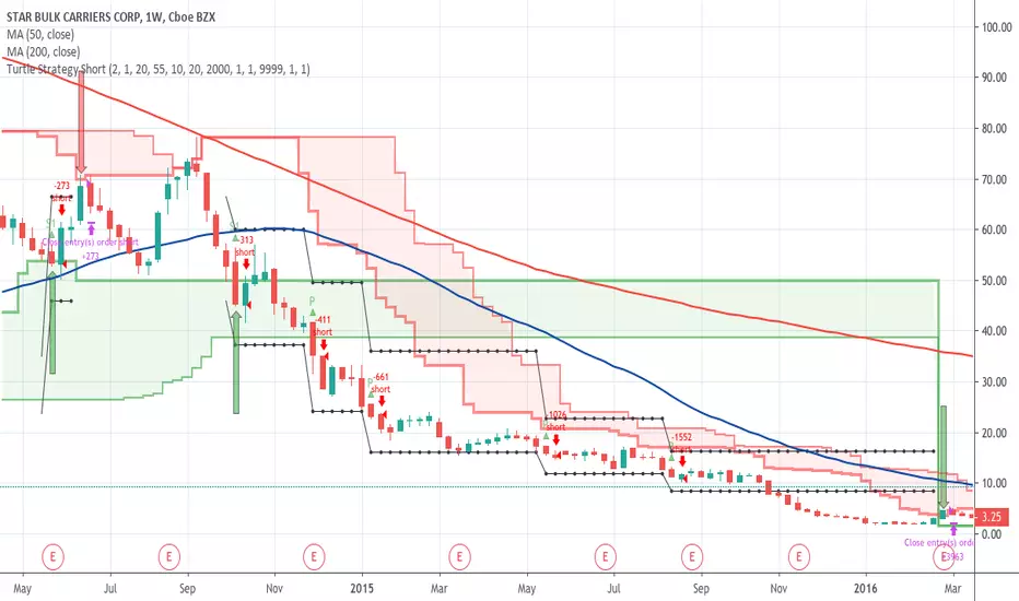 positions should be entered when the price crosses under the 20-day low (S1 low) or 55-day low (S2 low).