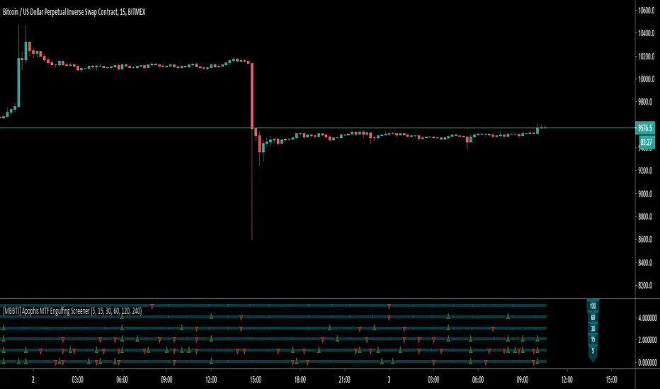 [MBBTI] Apophis MTF Engulfing Screener is based on Daveatt's Engulfing Screener and will screen for engulfing candles on multible time frames. It can help detecting not obvious engulfing candles.
