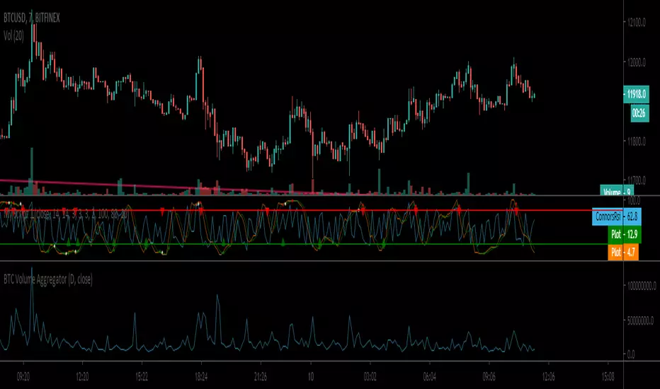 "Volume Aggregator" indicator gathering the volume data from usd markets usdt markets and contracts. I will expand is euro, Korean and china pairs.