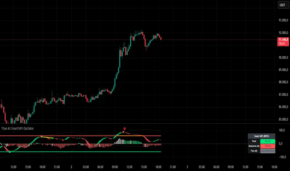 Titan AI: Smart MFI Oscillator is not your standard Momentum indicator. It is a next-generation Hybrid Intelligence Engine designed to detect the true state of market liquidity. Unlike traditional oscillators that rely on static levels (like 80/20), Titan AI employs an Unsupervised Learning Algorithm (K-Means Clustering)** to adaptively classify Money Flow in real-time.