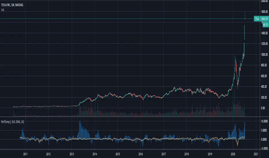 This indicator allows to compare the performance (% change) of a given symbol with the larger market (