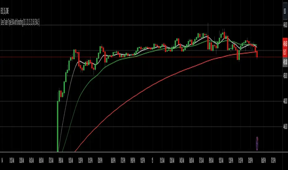 The "Ceres Trader MTF EMA with Smoothing" indicator is a versatile tool designed for traders who rely on Exponential Moving Averages (EMAs) for their technical analysis. This indicator uniquely blends the concept of EMAs with customizable smoothing techniques, enhancing the clarity and interpretability of moving average lines on your charts.