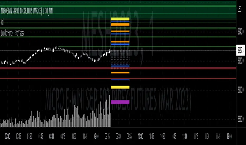 The first form of liquidity is based on multi-time fame highs and lows. It plots 1H, 4H, D, W, & M liquidity on an intraday chart to make it easier to identify. I believe hat liquidity is what drives the market and the most common form of this liquidity can be identified through higher time frame highs and lows. You can use whatever method you prefer to determine which liquidity pool will be targeted. When the liquidity is purged, it will be shown as dotted lines. This should not be used as traditional support/resistance, but rather as targets for the market.