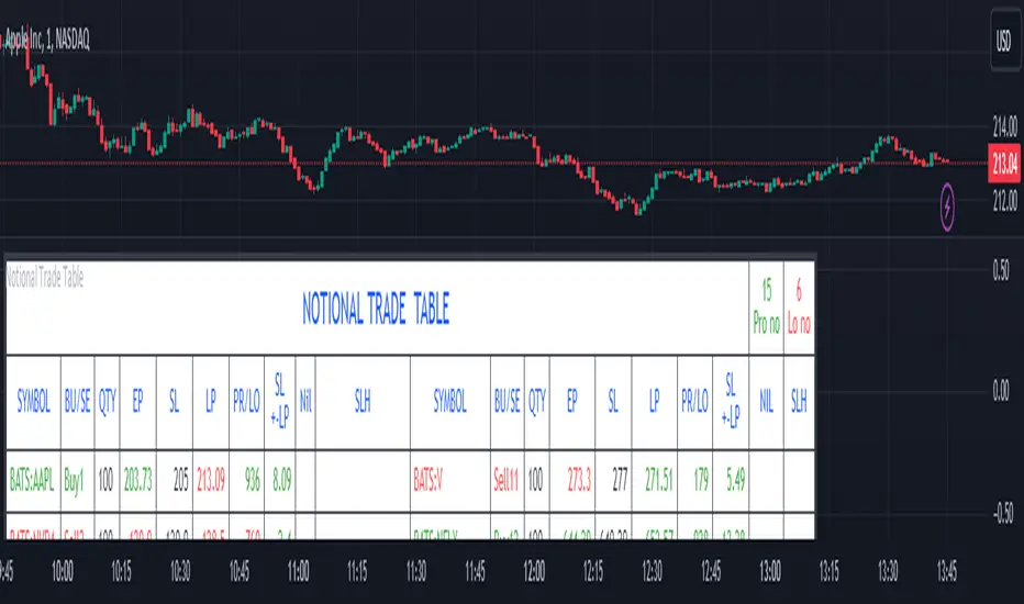 Notional Trade Table indicator displays notional trade values for given Buy and Sell of given input of Symbol, Quantity, Entry Price and Stop Loss .