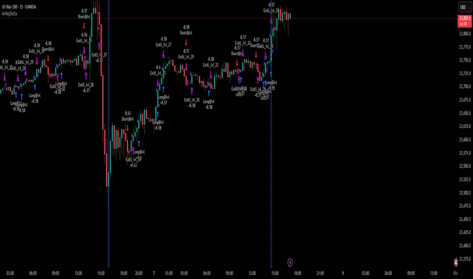 The delta has to show 2 positive candles for a buy at a support level, or 2 negative candles for a sell at a resistance level.
