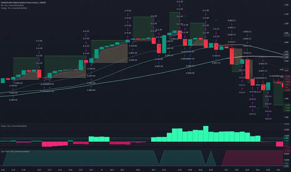 Discover the advanced capabilities of Strategy Plus, an essential component of the connectable indicator system designed for fast-paced strategy testing, visualization, and building within TradingView. This enhanced version of our foundational connectable strategy indicator seamlessly integrates with all connectable indicators. By utilizing the TradingView input source as a signal connector, it facilitates the linking of indicators to form a cohesive strategy. Each connectable indicator within the system sends signal weight to the next node, culminating in a comprehensive strategy that incorporates advanced customization options, sophisticated signal interpretation, and elaborate backtest labeling. Strategy Plus stands out by offering improved position management and extensive alert messaging capabilities, ensuring effective strategy refinement and backend integration.
