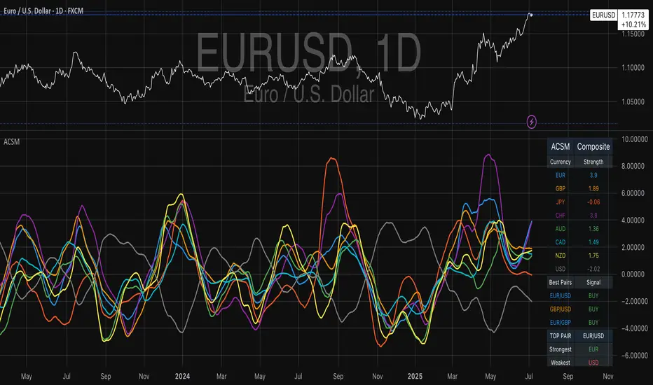 The Advanced Currency Strength Meter (ACSM) is a scientifically-based indicator that measures relative currency strength using established academic methodologies from international finance and behavioral economics. This indicator provides traders with a comprehensive view of currency market dynamics through multiple analytical frameworks.