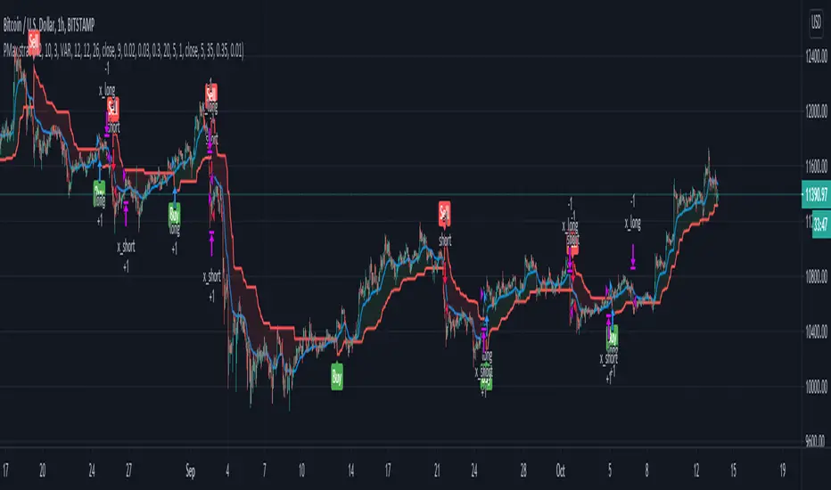 Profit Maximizer - PMax combines the powerful sides of MOST (Moving Average Trend Changer) and SuperTrend (ATR price detection) in one indicator.