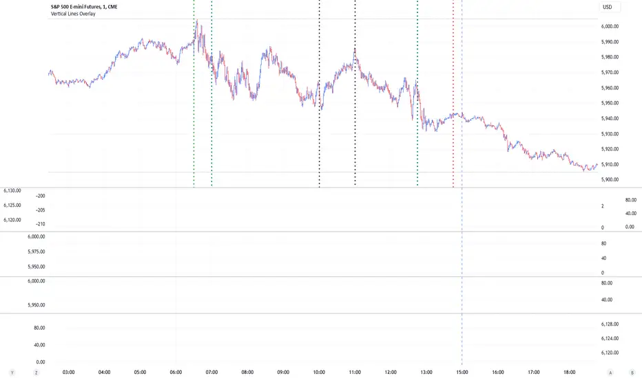 This script allows users to draw vertical lines on their charts at specific times of the day, providing a customizable tool for marking key events, session changes, or any other time-based analysis.