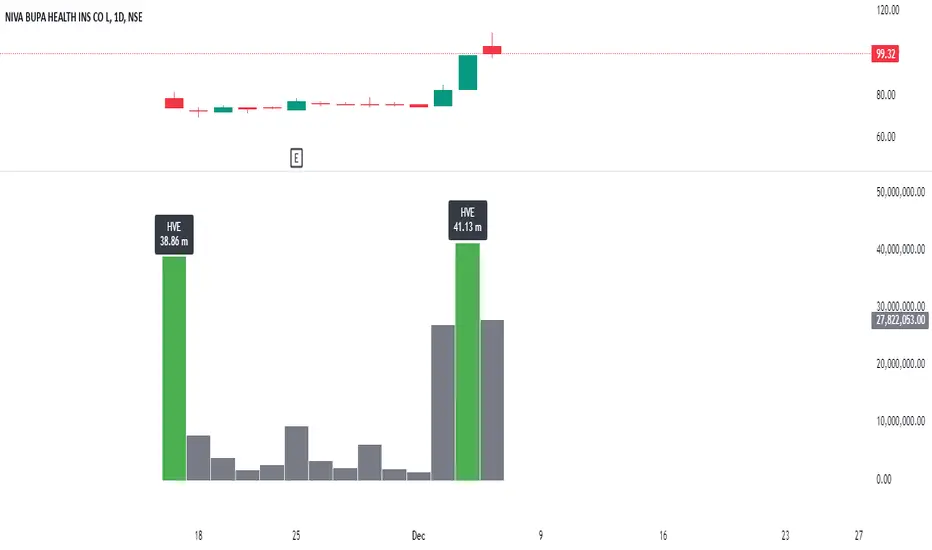 The Highest Volume Ever (HVE) indicator highlights the highest volume bar in the visible chart history. It visually emphasizes significant volume spikes, helping traders identify key moments of market activity, such as breakout signals or accumulation phases.