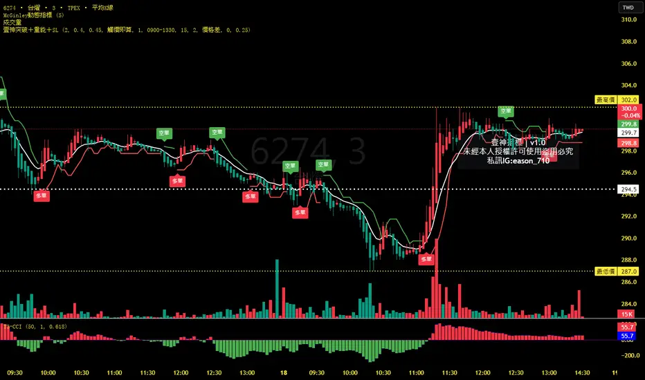 此指標利用雙極濾波器 (Two-pole Filter) 來平滑價格波動,並以顏色與提示符號顯示市場趨勢變化,幫助交易者判斷多空趨勢。