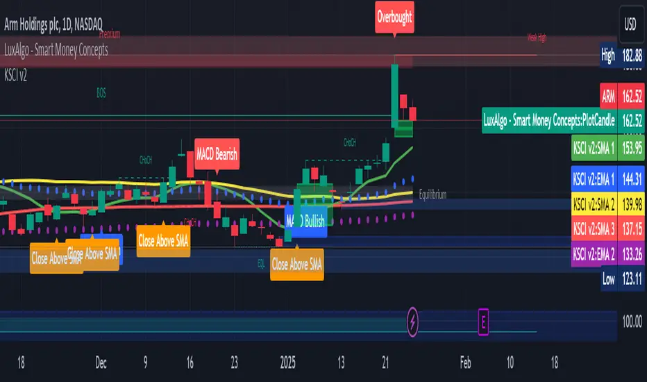 The Kubricks Super Colliding Indicator v2 is a comprehensive technical analysis tool designed for TradingView. It combines multiple indicators and conditions to help traders identify potential buy/sell signals and trend directions. The script is highly customizable, allowing users to toggle specific features on/off and adjust parameters to suit their trading style.