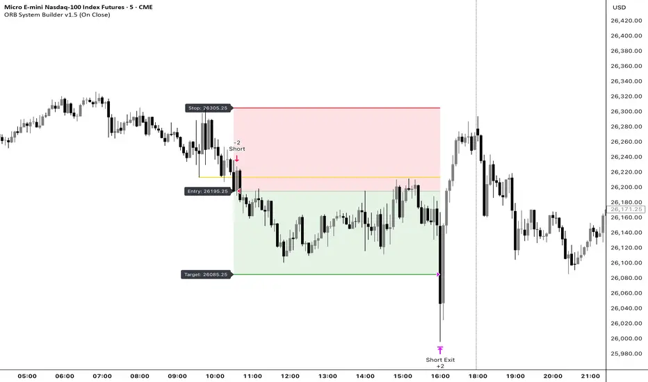 Instead, it functions as a system-building tool that allows users to define how entries, exits, and risk logic are applied around an opening range using a structured and repeatable rule engine.