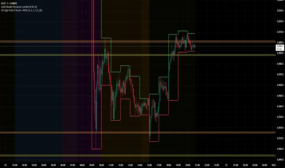 Title Suggestion: GC High-Prob Liquidity Zones: 3-Touch + RVOL Surge [v6]