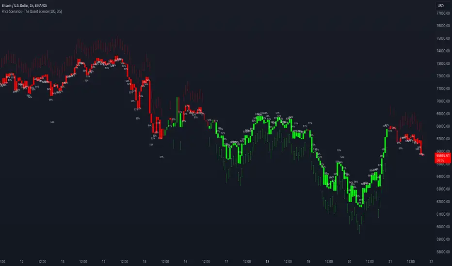 Price Scenarios - The Quant Science is a quantitative statistical indicator that provides a forecast probability about future prices moving using the mathematical-statistical formula of statistical probability and expected value.