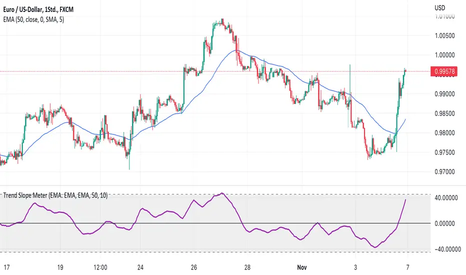 Update of chart only. For better illustration I used the default EMA provided by Trading View and applied the Trend Slope Meter for this plot. 開源腳本
