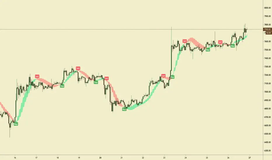 This indicator is a bollinger band that also auto-generates a trendline, giving you the best opportunities to buy & sell. That's it.