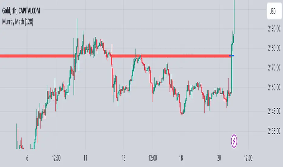The main concept behind Murrey Math is that prices tend to react and rotate at specific price levels. These levels are calculated by dividing the price range into fixed segments called "ranges", usually using a number of 8, 16, 32, 64, 128 or 256.
