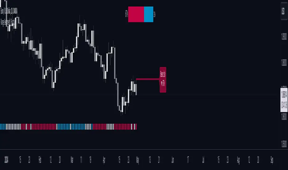 This indicator calculates the current sentiment by identifying the highest swing high and the lowest swing low, then evenly dividing the distance between them into percentage amounts. If the price is above the 50% mark, it indicates bullishness, whereas if it's below 50%, it suggests bearishness.