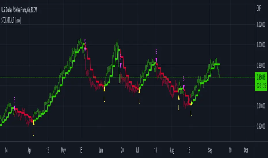 STD-Filtered, ATR-Adaptive Laguerre Filter [Loxx] is a standard Laguerre Filter that is first made ATR-adaptive and the passed through a standard deviation filter. This helps reduce noise and refine the output signal. Can apply the standard deviation filter to the price, signal, both or neither.