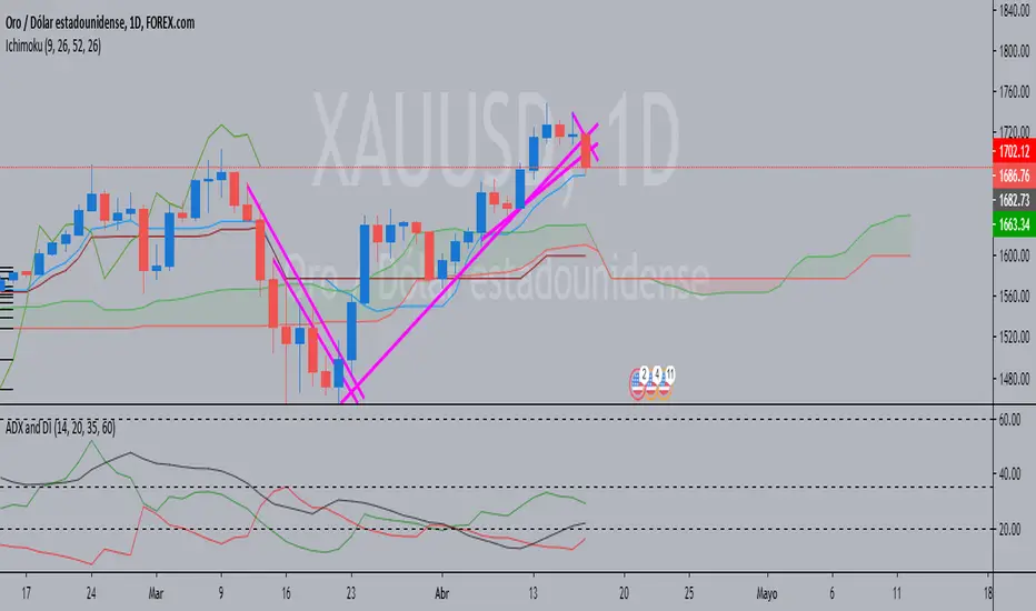 This indicator contains 3 levels of configuration to measure the strength of DI + and DI- when any of the two is below level 20 it is possible that the price will change trend.