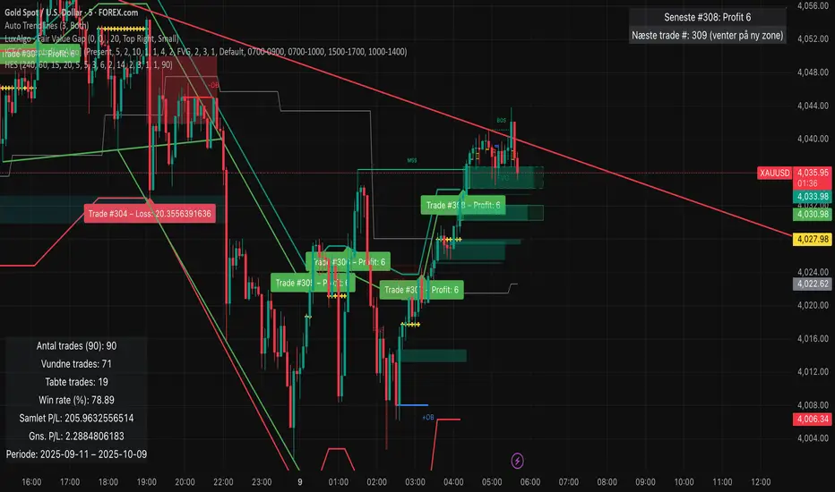 This script automatically identifies Fair Value Gaps (FVG) and Order Blocks (OB) across multiple timeframes, calculates bias alignment, and executes simulated trades with dynamic stop loss and two take-profit targets (TP1/TP2). It also logs each trade, displays real-time trade info and performance summary tables, and triggers alerts on new entries.